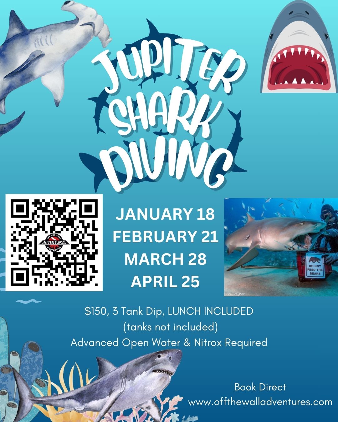 Join us for a 3 tank dive (tanks not included, gourmet lunch provided)